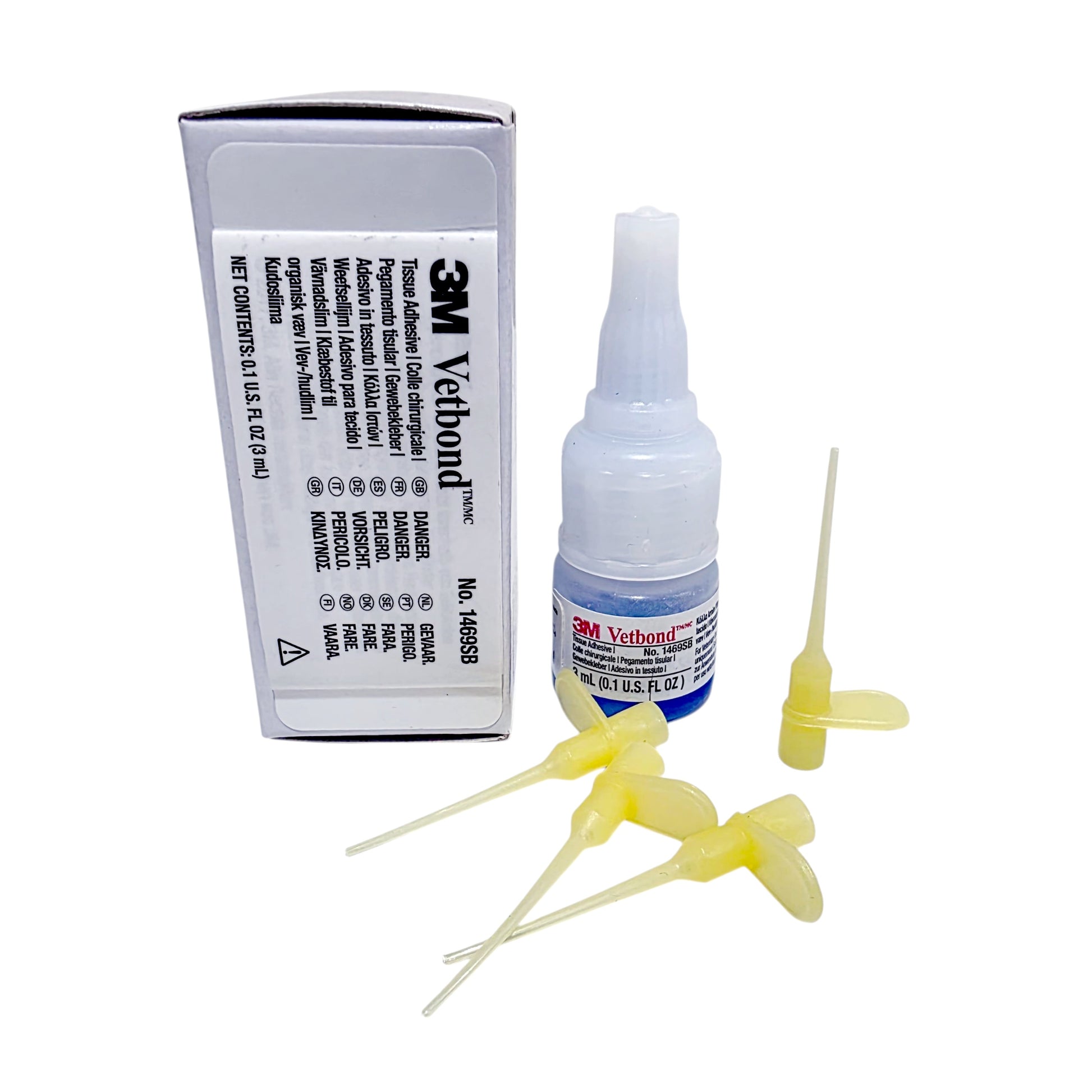 - Cyanoacrylate adhesive: Vetbond is a fast-acting liquid adhesive that bonds wound edges together.