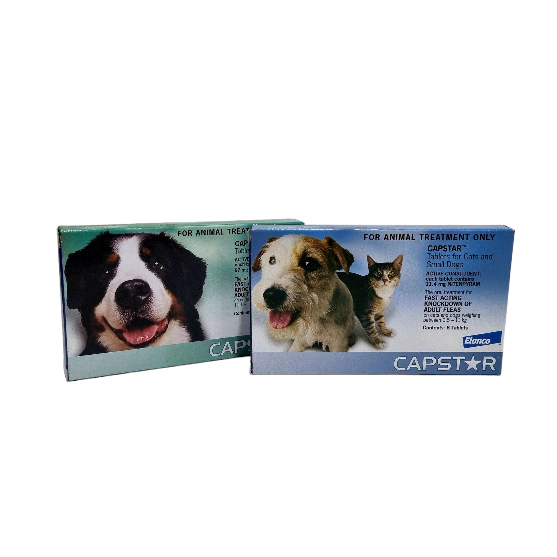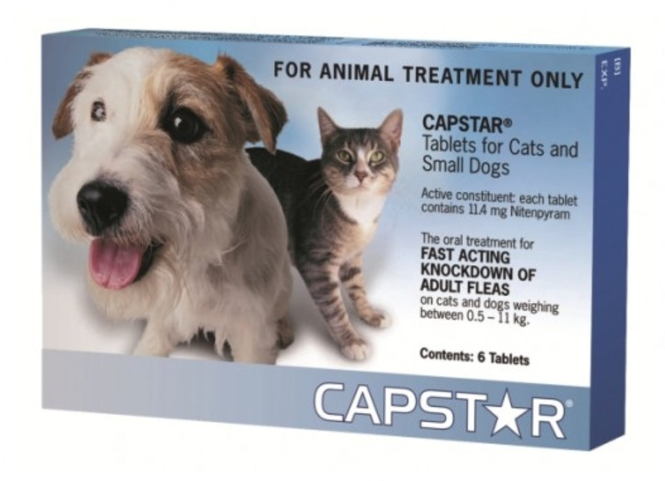 Fast acting knockdown tablets of adult fleas on cats and dogs weighing between 0.5 to 11kg. Capstar is an orally administered tablet that provides fast flea relief. It starts working in 30 minutes. A single dose should kill the adult fleas on your pet. If your pet gets reinfested, it is safe to give another dose as often as once per day.