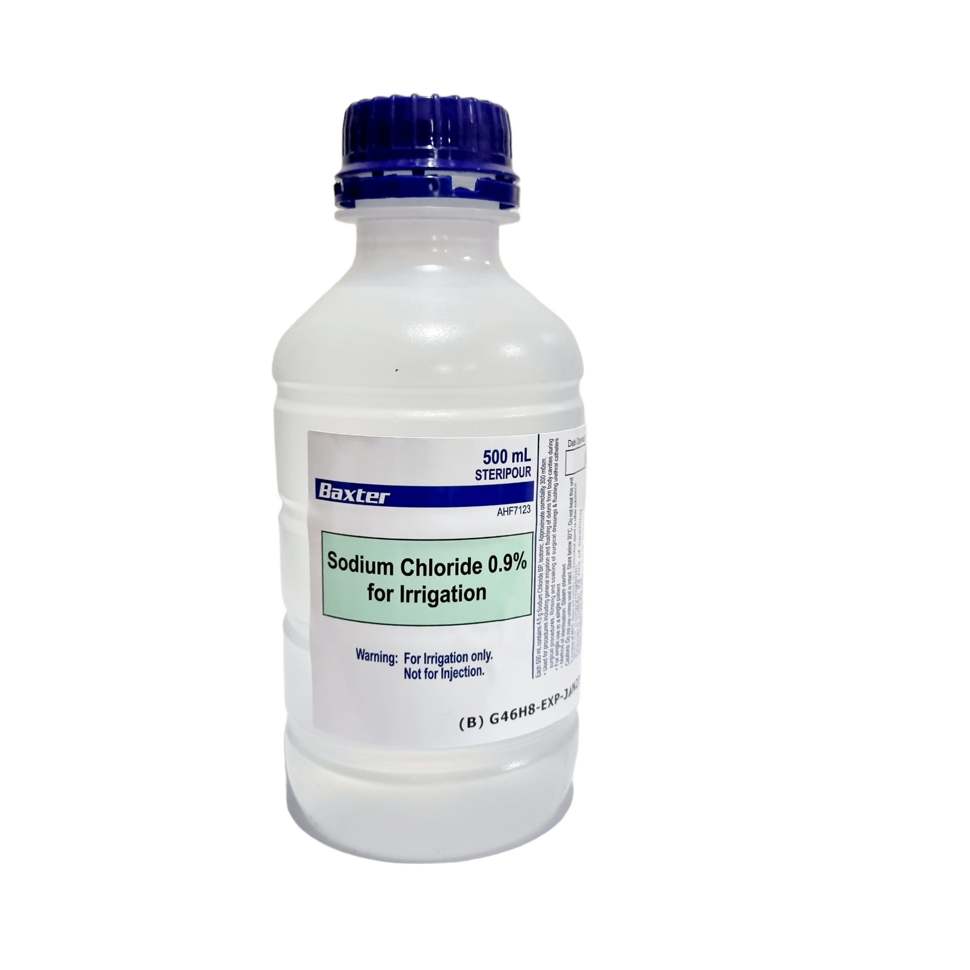 Sodium Chloride 0.9% for Irrigation is used to irrigate body cavities, wounds, or indwelling urethral catheters. It is also used for rinsing or soaking surgical dressings that are in contact with wounds.