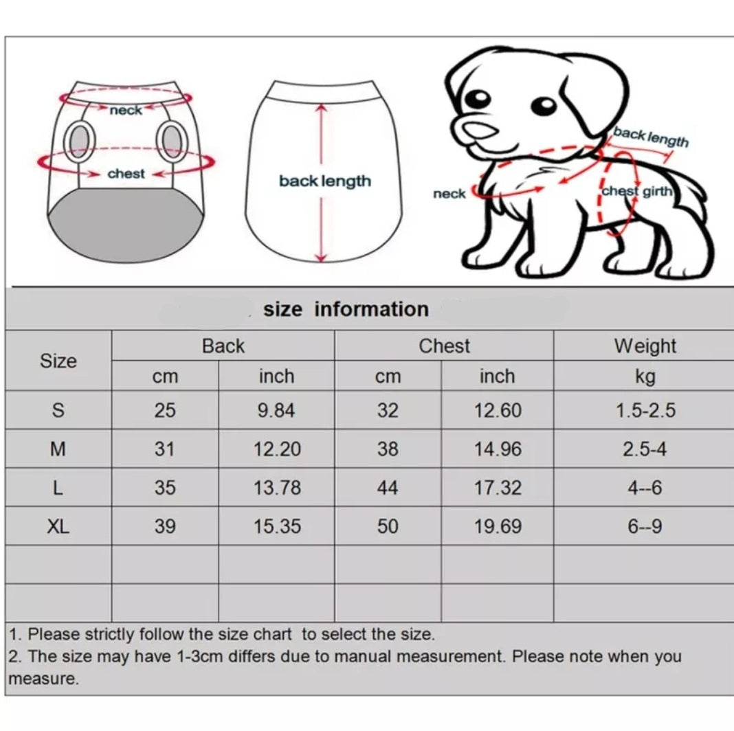 - Small - Back 25cm (9.84 inch), Chest 32cm (12.6 inch), Approximate Weight 1.5-2.5kg